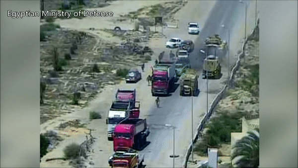 이집트군 전차를 향해 한 차량이 부자연스럽게 다가온다.