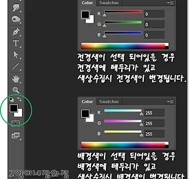 색상수집 썸네일형 리스트형 스포이드 툴 색상 찍었는데 배경색이 바뀜 스포이드 툴 등으로 색상을 찍었는데 전경색이 아닌 배경색이 변합니다. 기본적으로 스포이드 툴 또는 다른방법을 써서 색상을 수집할 경우 전경색이 바뀝니다.배경색이 바뀔 경우 컬러창에서 배경색이 선택된 경우입니니다.컬러창은 포토샵 화면 우측 상단에 있습니다.없을 경우 메뉴에서 Window - Color 로 이동하면 찾을 수 있습니다.간단하게 전경색을 클릭해주면 됩니다.선택된 색은 테두리가 표시되어있으며 언제든 바꿀 수 있습니다. 더보기 이전 1 다음